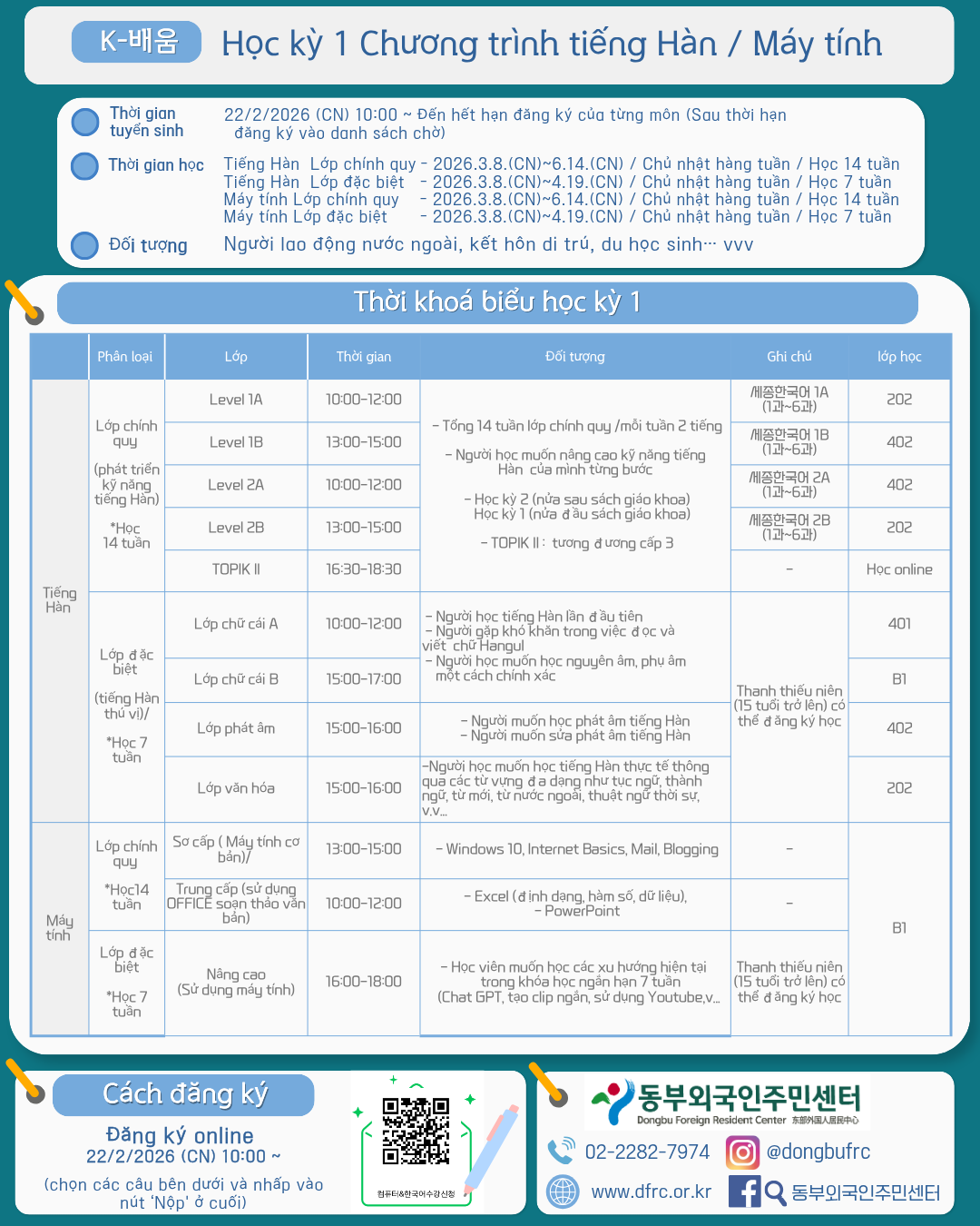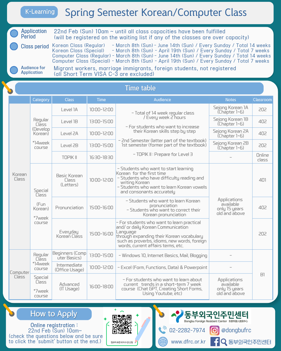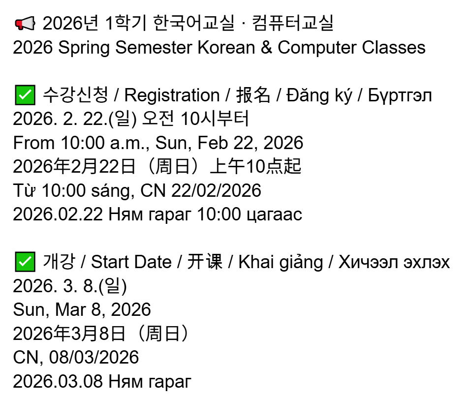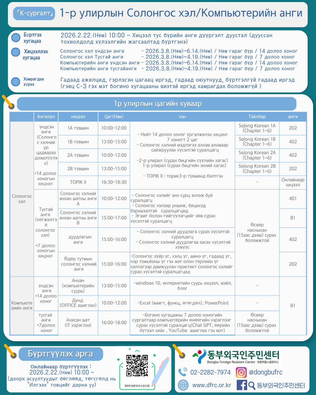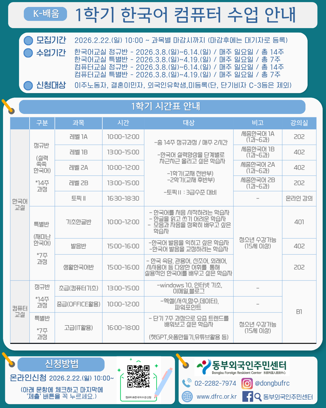 [K-배움] 2026년 1학기 한국어/컴퓨터 강의 수강신청 안내