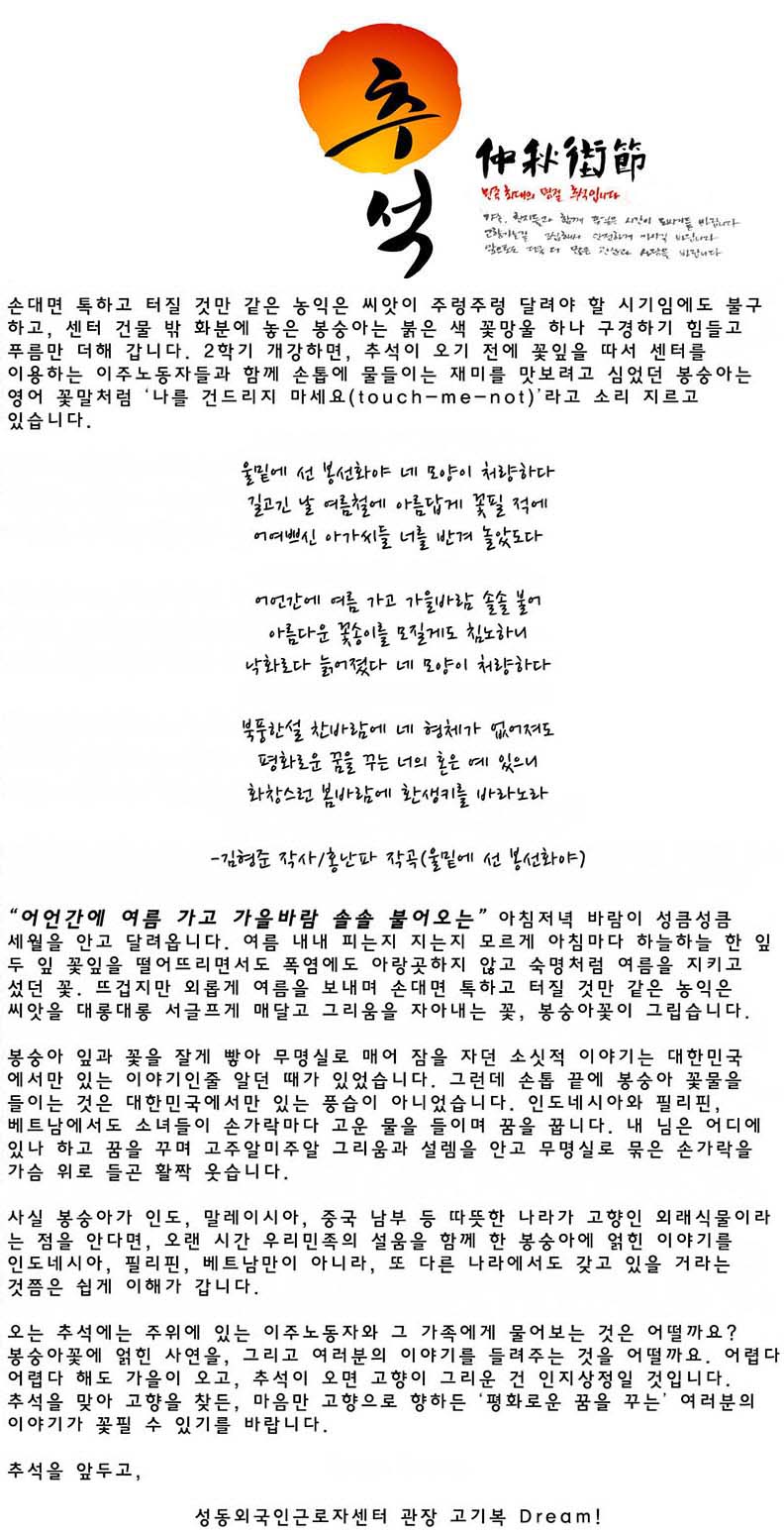 평화로운 꿈을 꾸는 이들의 추석 이야기가 넘쳐나기