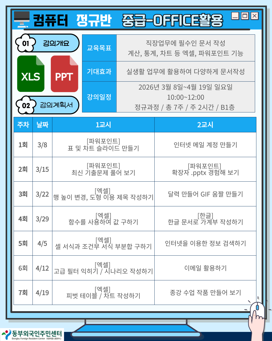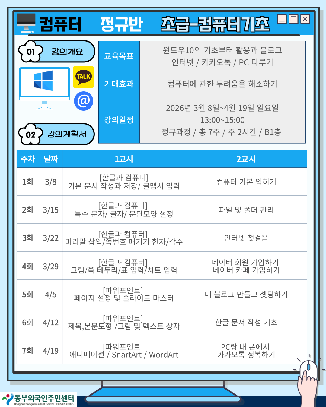 3월 8일 개강하는 컴퓨터 수업을 소개합니다.
