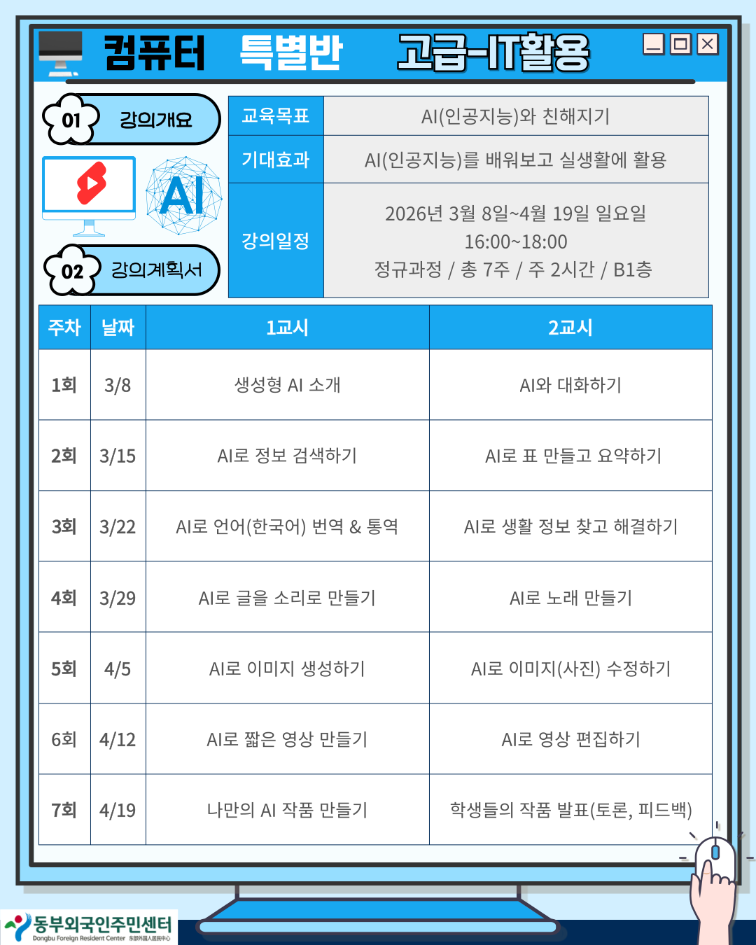 2026년도 1학기 컴퓨터 수업을 소개합니다.